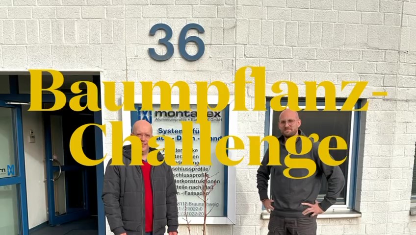 die Baumpflanzchallenge hat auch uns erreicht und wir freuen uns, dieser Herausforderung gleich doppelt gerecht werden zu können: Mit einem selbstgebauten Baum aus Aluminium und, selbstverständlich mit einem echten Baum. Wer und nominiert hat und wen wir nominieren, erfahren Sie in diesem kurzen Video. https://montaflex.de/wp-content/uploads/2025/11/VIDEO-2025-11-13-08-25-13.mp4